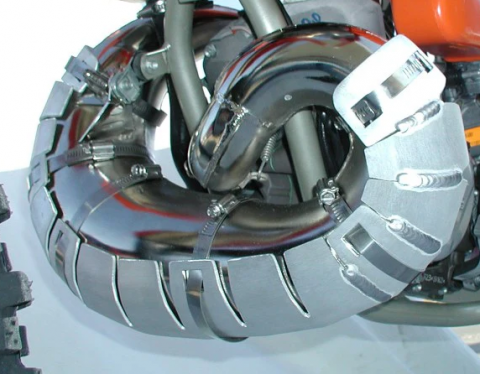 Pipe guards are our original product. They are made from 1/8" laser cut aluminum blanks and then pre-formed to fit each specific model. If we don't list your make, model, or after market pipe, call or e-mail us and we can arrange to custom make you one. We can make a pipe guard to fit any type of make or model!! All mounting hardware is included! Our Pipe guards are a less expensive and more durable choice than carbon fiber!