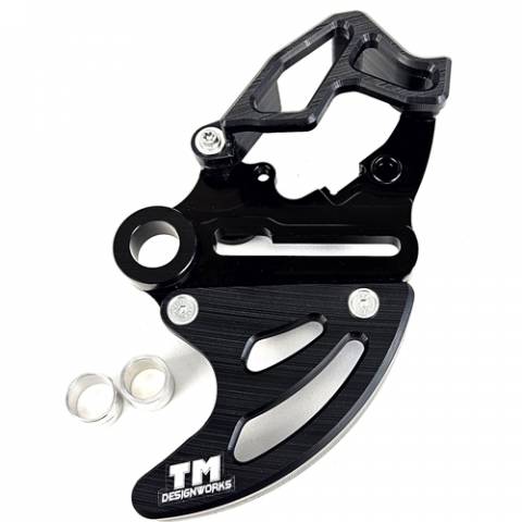 Premium composite plastic rear brake rotor & caliper guard with anodized billet aluminum carrier.
