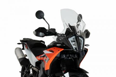 Touring screens, developed by Puig in Barcelona, are designed with the objective to aerodynamically protect the rider without affecting his/her field vision. In addition, these screens fit perfectly with the adventure style and aesthetics of the trail models thanks to their wide range of colors and different sizes.